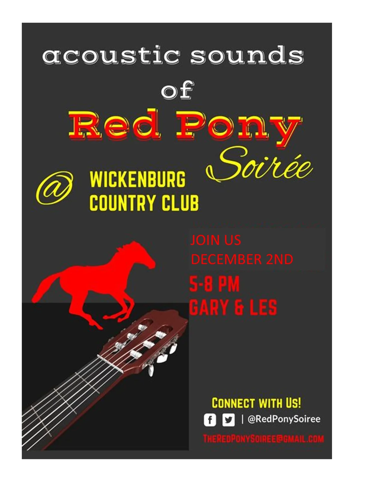 Red Pony Soire – Live Entertainment Les and Gary from The Williams Brothers Band pair up to play your favorite tunes. + Add to Google Calendar + iCal / Outlook export Date Mar 29 2024 Expired! Time 5:00 pm - 8:00 pm Share this event