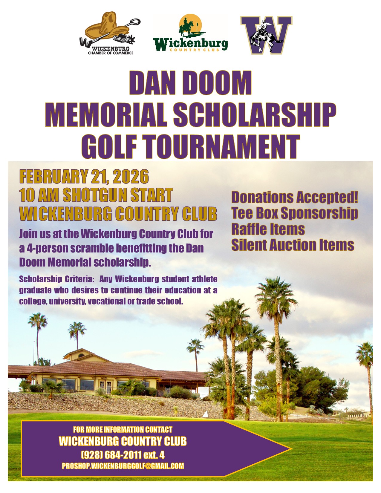 Tournament ScheduleWe would love to host your golf outing at Wickenburg Golf Club. Please give us a call at (928) 684-2011 or send us a message using the form on this page for more info on rates and availability.